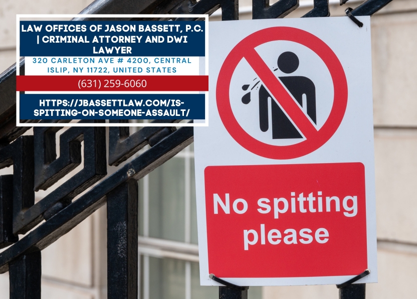Long Island, NY - Long Island assault defense attorney Jason Bassett of The Law Offices of Jason Bassett, P.C. (https://jbassettlaw.com/is-spitting-on-someone-assault/), is drawing attention to how spitting incidents are treated under New York criminal law. While often perceived as a minor affront, spitting can lead to an assault charge because it involves intentional, offensive physical contact without consent. The firm is providing legal perspective on charging decisions, available defenses, and the potential penalties that follow these allegations, with a focus on cases arising in Suffolk County and Nassau County.