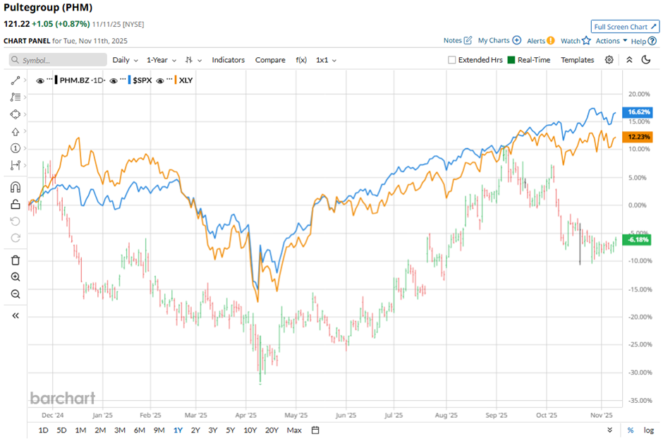 Shares of the Atlanta, Georgia-based company have underperformed the broader market over the past 52 weeks. PHM stock has dropped 9.2% over this time frame, while the broader S&P 500 Index ($SPX) has rallied 14.1%. Moreover, shares of PulteGroup are up 11.3% on a YTD basis, compared to SPX’s 16.4% increase.