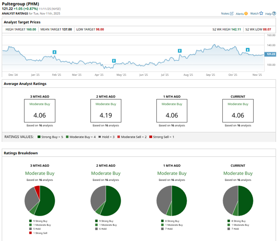 On Oct. 23, Oppenheimer analyst Tyler Batory reiterated a “Buy“ rating on PulteGroup and maintained a price target of $140.