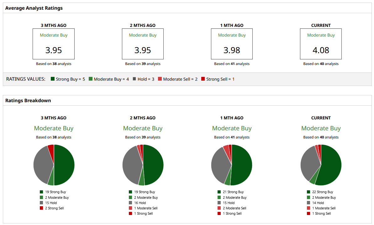 The 40 analysts who cover the stock on Wall Street give it a consensus “Moderate Buy,” with 22 of them holding a “Strong Buy” rating and two giving it a “Moderate Buy.” 14 analysts have a “Hold” rating on the stock, one a “Moderate Sell,” and one last one a “Strong Sell.” Despite concerns around the iPhone maker’s AI ventures, investors should not forget that the underlying business and its ecosystem are still among the strongest in the world.