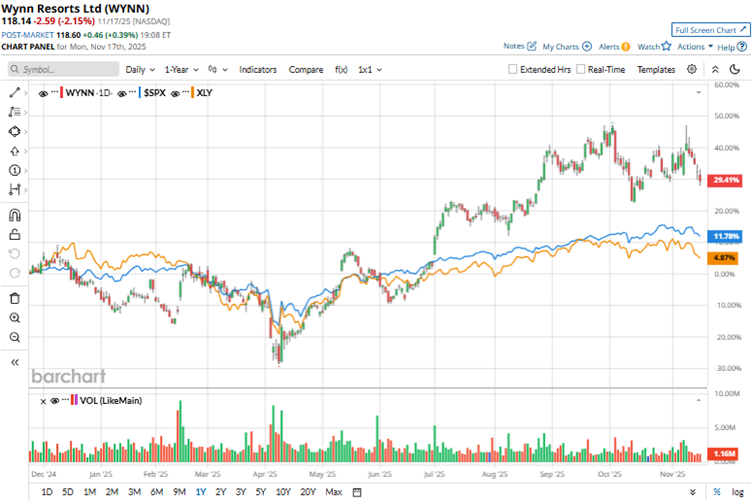 On Nov. 6, Wynn reported its third-quarter results for fiscal 2025. The company’s operating revenues increased 8.3% year-over-year (YOY) to $1.83 billion, surpassing the $1.77 billion that Wall Street analysts had expected. This gain was based on a 15.3% increase in revenues from its casinos, reaching $1.17 billion. On the other hand, Wynn’s adjusted EPS dropped from $0.90 to $0.86 YOY. The figure also missed the Street estimate of $1.09.