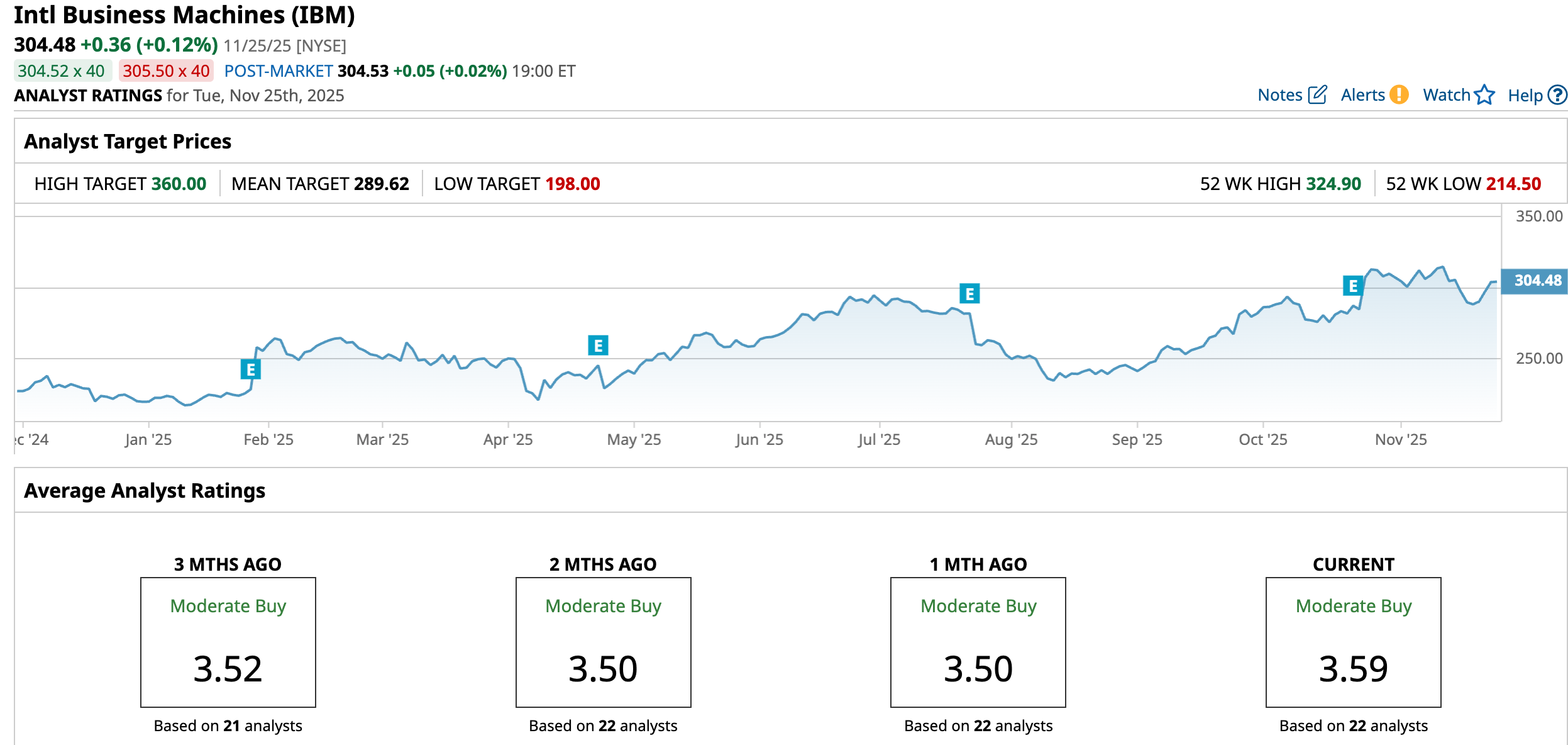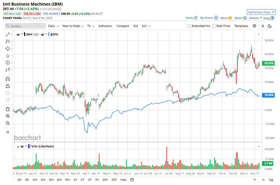 With ongoing innovation in AI, quantum computing, and industry-specific cloud tools, IBM offers flexible solutions that meet evolving enterprise technology needs. So far this year, shares of this New York-based tech giant have posted a 38.51% return, outperforming the broader S&P 500 Index ($SPX), which has gained roughly 15.03% in 2025. The stock hit a fresh 52-week high of $324.90 on Nov. 12 and is only down about 6.71% from that peak. The company’s market capitalization currently stands at roughly $284 billion.