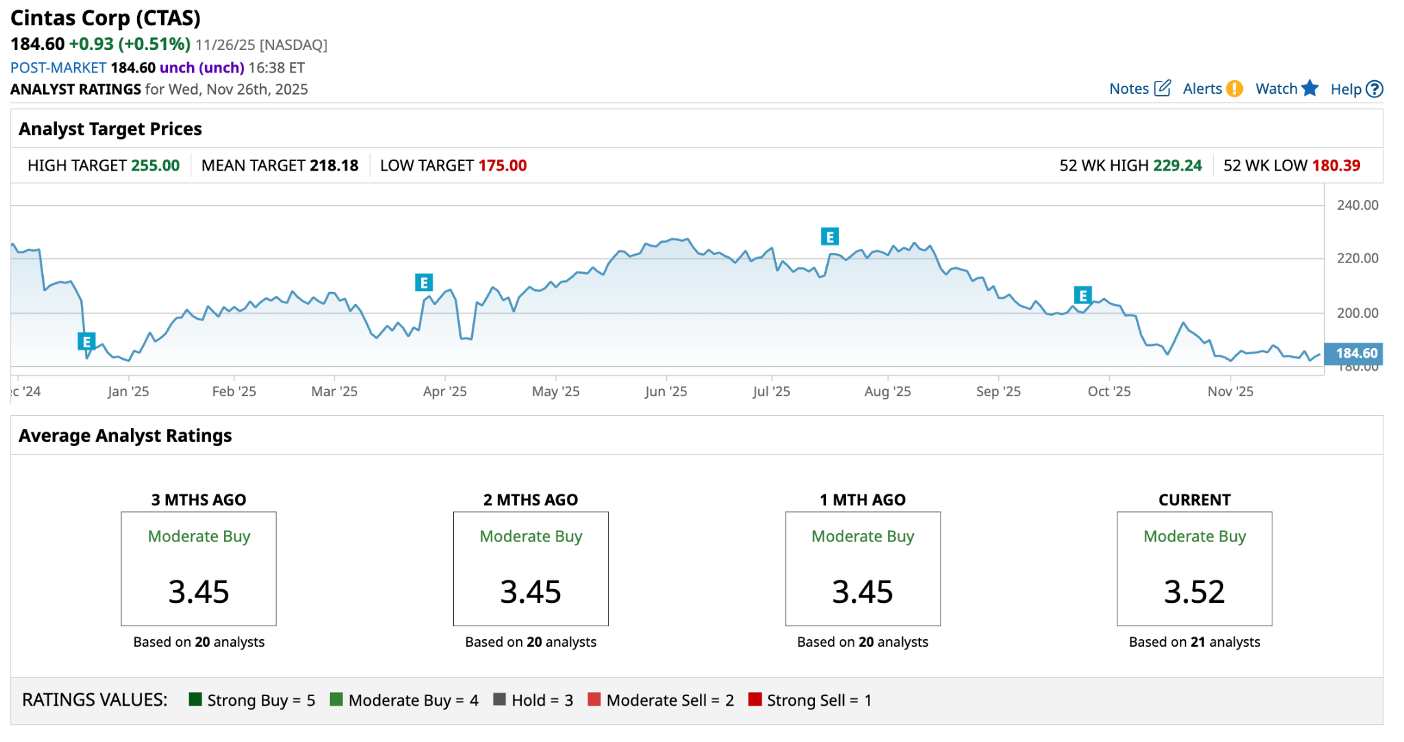 With that, a consensus among 21 analysts rate the stock a “Moderate Buy”, a sentiment consistent over the past three months. The high target price of $255 suggests as much as ~38%.