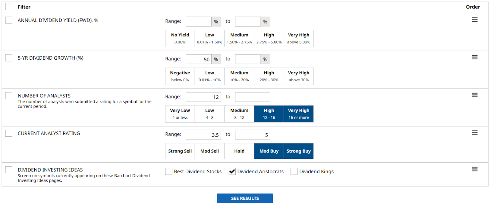 I used Barchart’s Stock Screener to find the highest-yielding companies on my watchlist.
