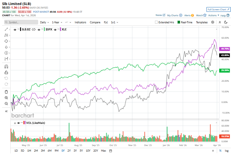 SLB stock has risen 18.6% over the past 52 weeks, surpassing the S&P 500 Index's ($SPX) nearly 16.7% gain but trailing the Energy Select Sector SPDR Fund's (XLE) 25.5% return over the same time frame.