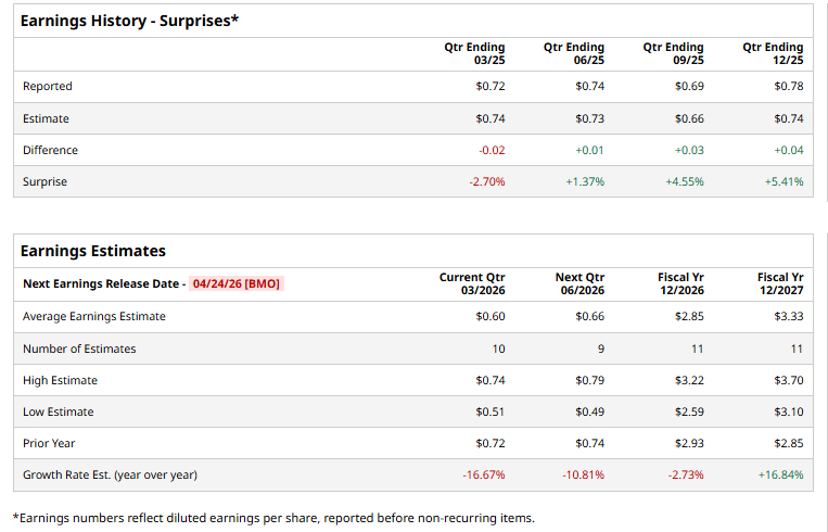 The company is expected to announce its fiscal Q1 2026 results on Friday, Apr. 24, before the markets open. Ahead of this event, analysts predict SLB to report an adjusted EPS of $0.60, down 16.7% from the year-ago quarter's $0.72. It has surpassed Wall Street's bottom-line estimates in three of the past four quarters while missing on another occasion.