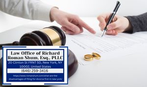 New York, NY - Filing for divorce first in New York may appear to be a proactive step, but according to Manhattan divorce lawyer Richard Roman Shum of The Law Office of Richard Roman Shum, Esq. ( https://www.romanshum.com/what-are-the-disadvantages-of-filing-for-divorce-first-in-new-york/ ), doing so can carry several disadvantages that individuals should carefully consider. While initiating the process may allow one spouse to control the timing and venue, it can also impose additional financial, emotional, and procedural burdens on the filing party.