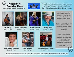 WAYNESVILLE, OH - March 2, 2026 - Keepin’ It Country Farm, home of traditional country artist Richard Lynch, has unveiled the highly anticipated lineup for its 2026 Love Tattoo Foundation Benefit Concert Series . Set against the backdrop of the farm’s stunning barn-style venue in historic Waynesville, Ohio, the concert series brings together some of country music’s most beloved voices — all to support American veterans through the Love Tattoo Foundation.