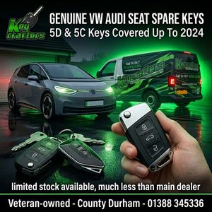 Key Crafters Auto Locksmiths expands its services to include replacement and spare keys for VW, Audi, Seat, and Skoda vehicles up to 2025, offering drivers across County Durham a reliable alternative to dealership-only key solutions.